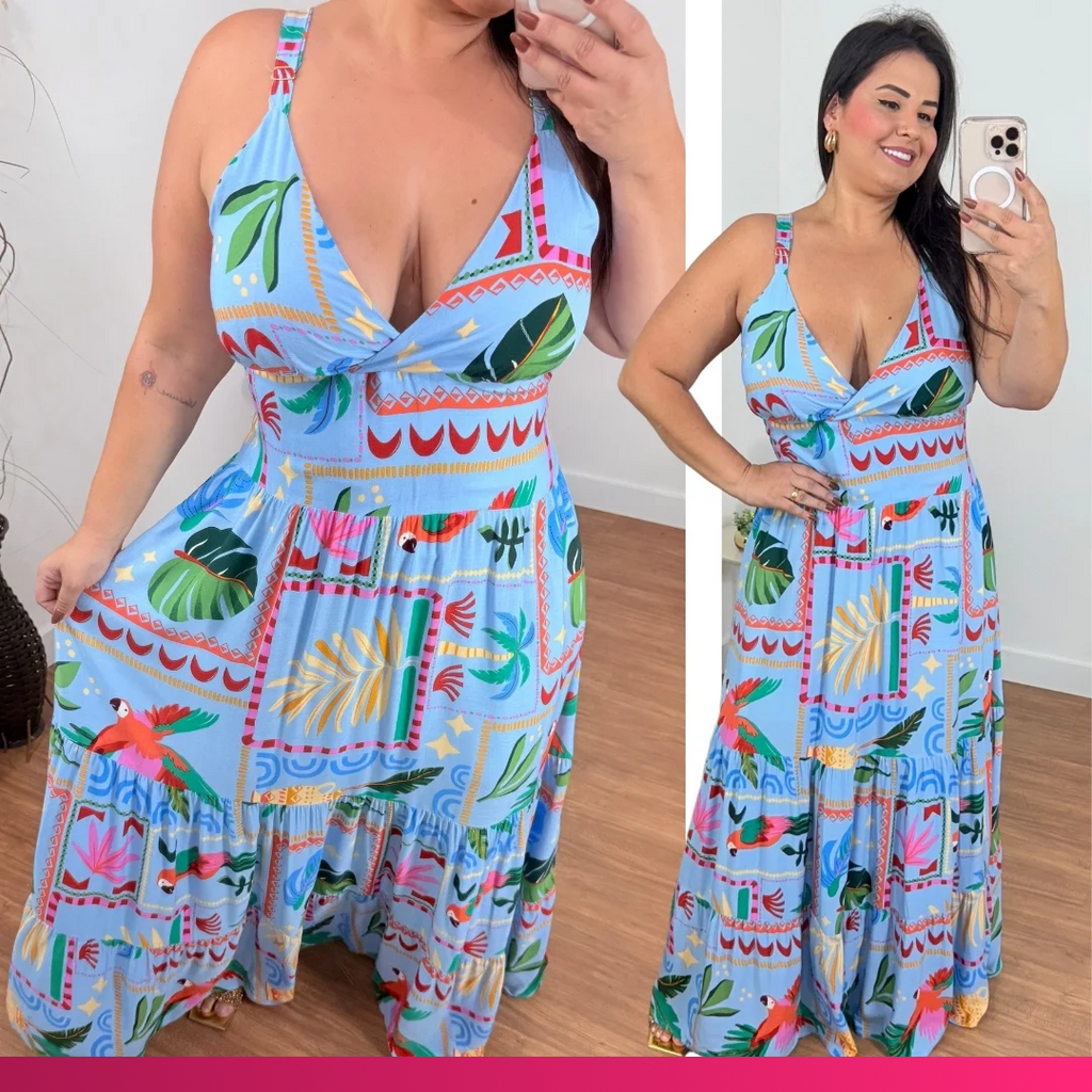 Vestido Alça Stefany Azul Claro Plus Size